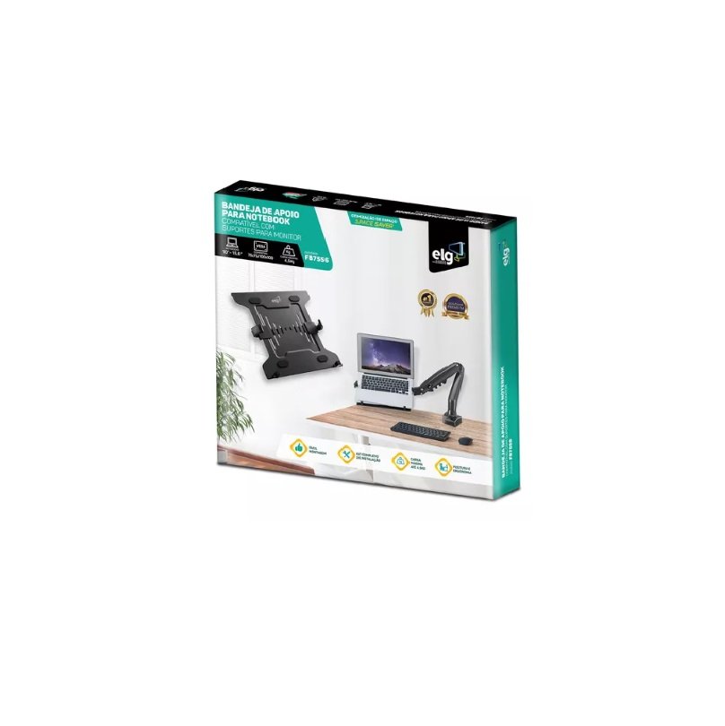 Bandeja de apoio para Notebook, acoplável a suporte de pistão VESA 75×75 – ELG FB7556