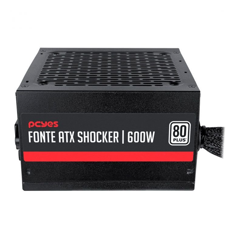 FONTE GAMER PCYES SHOCKER, 600W, 80 PLUS WHITE, PRETO, PF600SHW